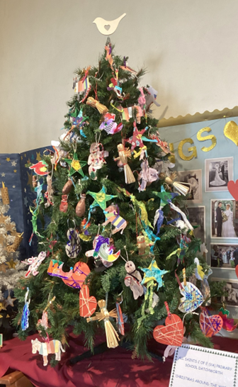 We have a tree on display at the festival and every child in the school has created a decoration to hang on it.