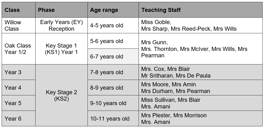 Reception, Year 1 and Year 2 are referred to as our infant classes and Years 3 to 6 are our junior classes and are referred to as Key Stage 2.